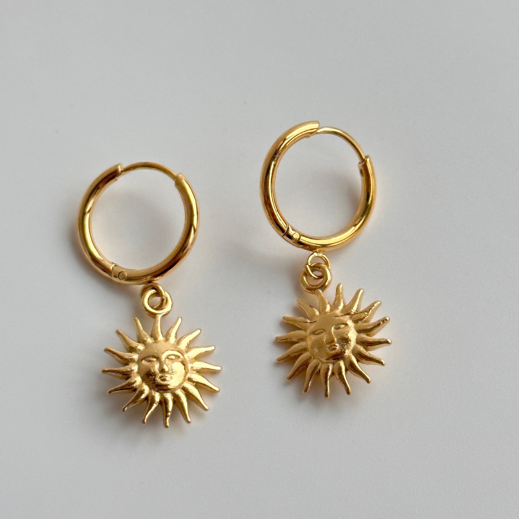 Delight in the stunning beauty of these 18K gold sun pendant earrings, crafted from durable titanium steel. Featuring a unique U and star shape design, these retro-inspired earrings beautifully capture celestial elements like the moon and planets. Pair them with a flowing dress or a casual top for a whimsical flair that brightens your look.