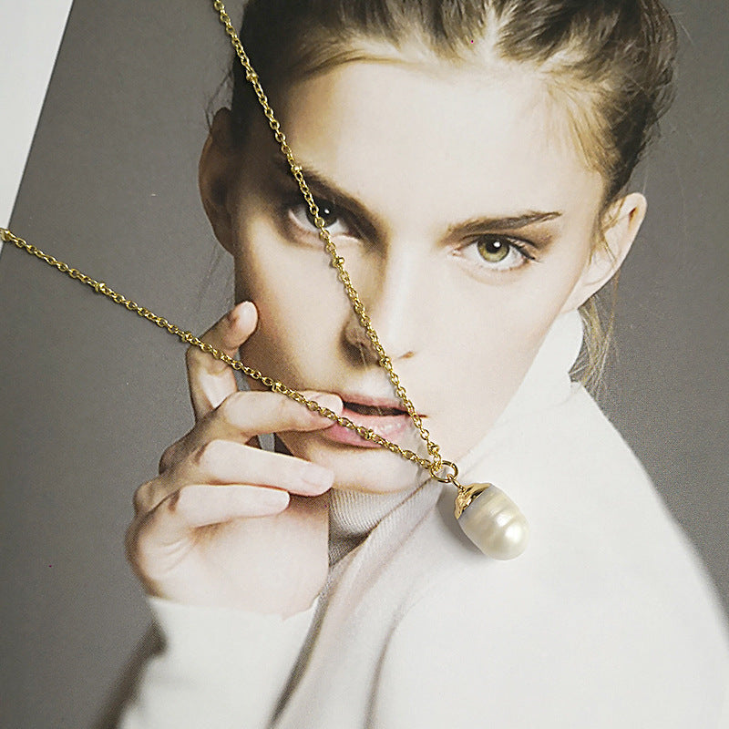 A bohemian piece that showcases a stunning drop-shaped pendant crafted from lustrous mother-of-pearl. This elegant necklace features a delicate bead chain, adjustable from 21cm to 50cm. Style it with a flowy dress or a simple top to enhance its beautiful charm.