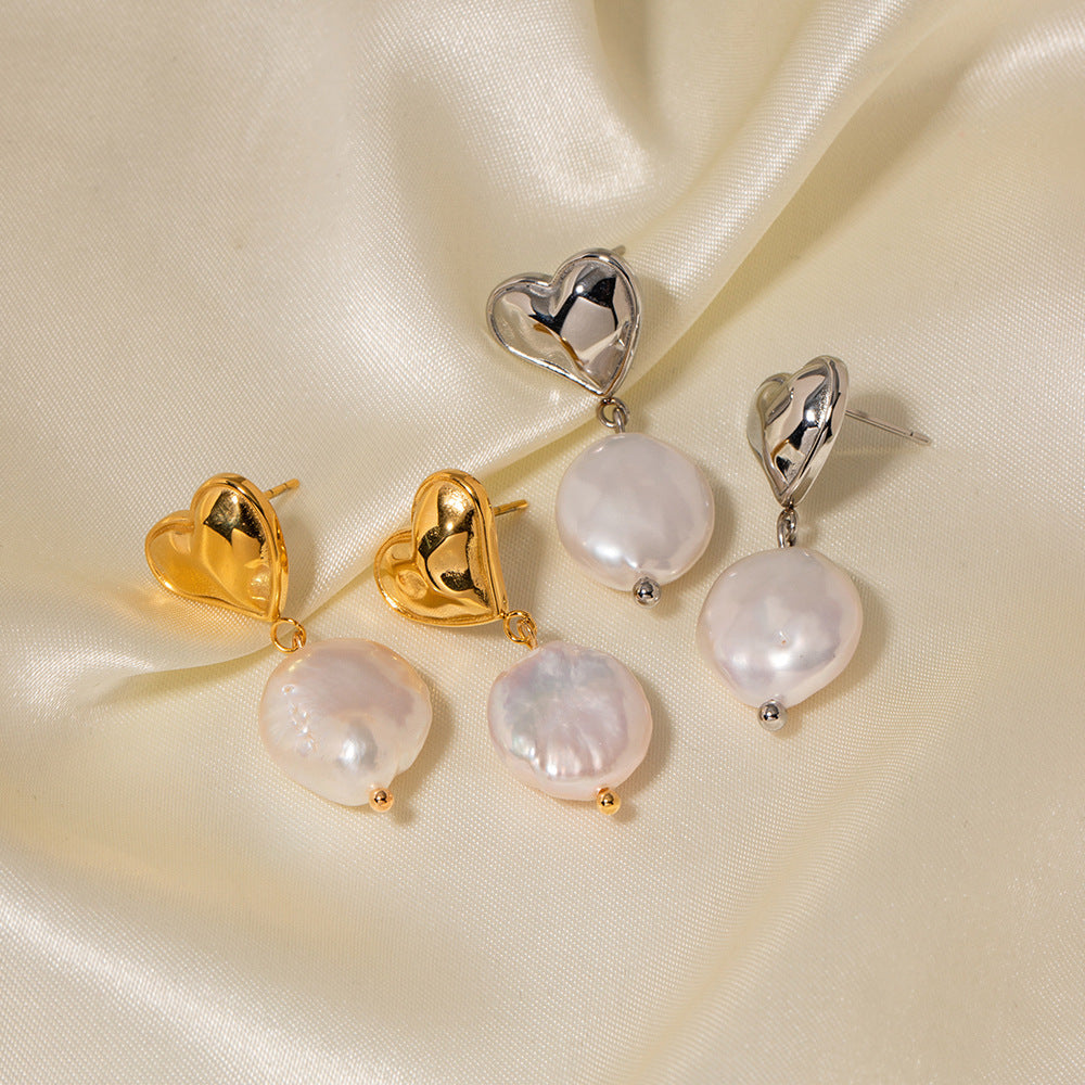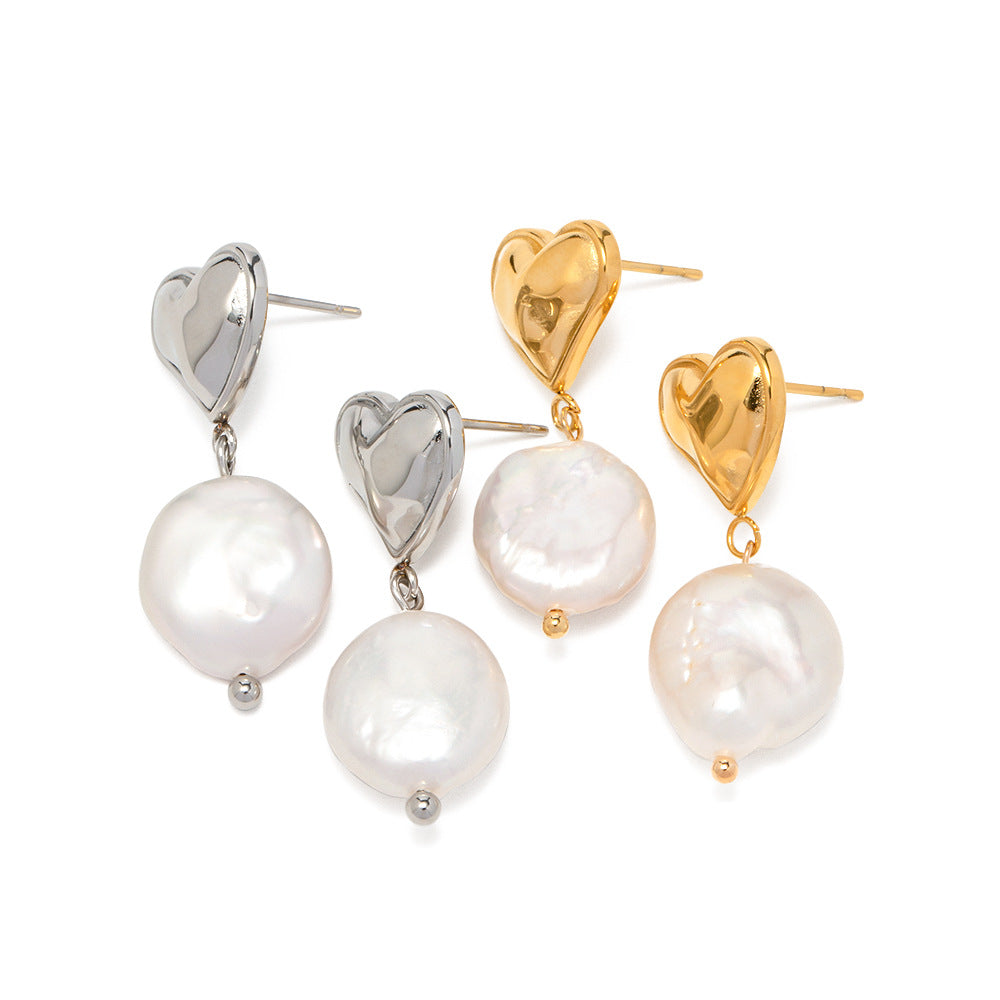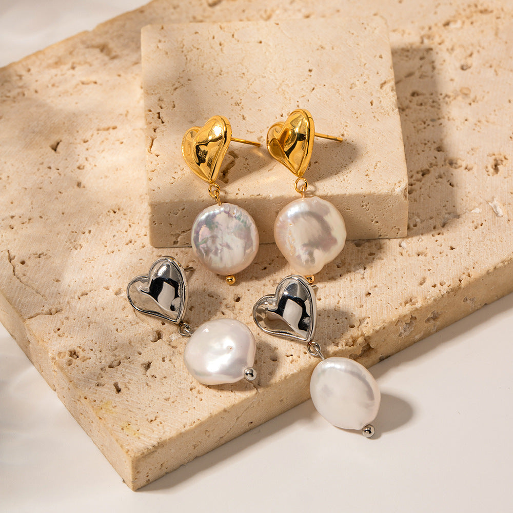 Presenting the Freshwater Pearl Elegant Drop Earrings... Crafted from durable stainless steel, these earrings feature a stunning geometric design adorned with lustrous freshwater pearls. Their delicate drop style makes them a beautiful choice for adding a touch of sophistication to your look. Pair them with a simple dress or a chic blouse for an effortlessly stylish appearance.