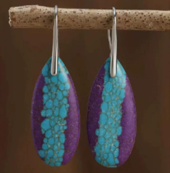 Cherish the elegance of our Natural Stone Green Emperor Drop Earrings. Crafted from stunning Emperor Stone, these earrings showcase a captivating drop shape with vibrant hues of red, purple, and turquoise, beautifully complemented by gold ear hooks. Perfectly suited for a variety of occasions, these earrings will add a unique flair to your ensemble.