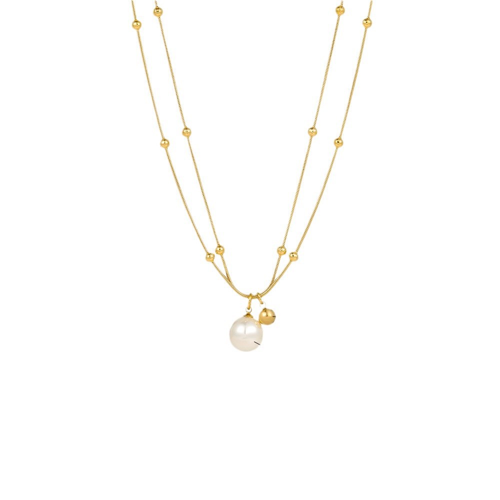 Inspired by nature, our Titanium Steel Pearl Double Chain Necklace features a stunning geometric design that beautifully combines elegance and modernity. Crafted from durable titanium steel and adorned with lustrous mother-of-pearl, this necklace measures adjustable lengths of 41cm to 50cm. Style it with a simple top or a chic dress for a sophisticated touch.