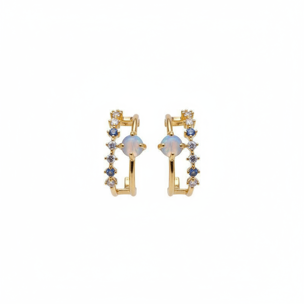 After a touch of glamour? These lovely Earthy Blue Opal Earrings feature stunning blue opals set in 925 silver pins. Their delicate geometric design adds a unique touch to your look. Pair them with a simple dress to let the opals shine beautifully.