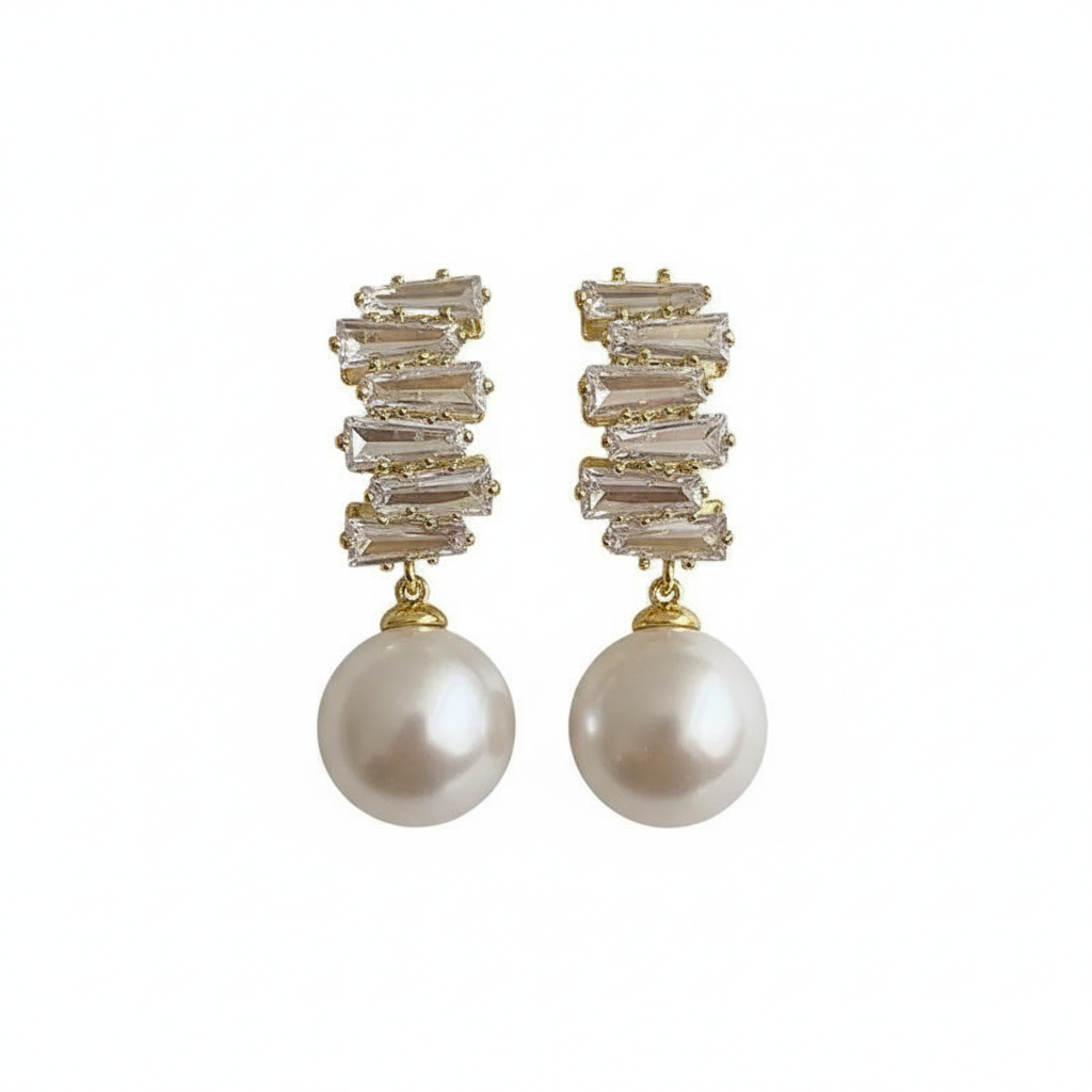 With its stunning geometric design, the Antique White Zircon Pearl Earrings are a beautiful blend of vintage charm and sophistication. Handcrafted with care, these earrings feature elegant white zircon and pearl elements. Style them with a simple dress or your favourite blouse for a refined finish.