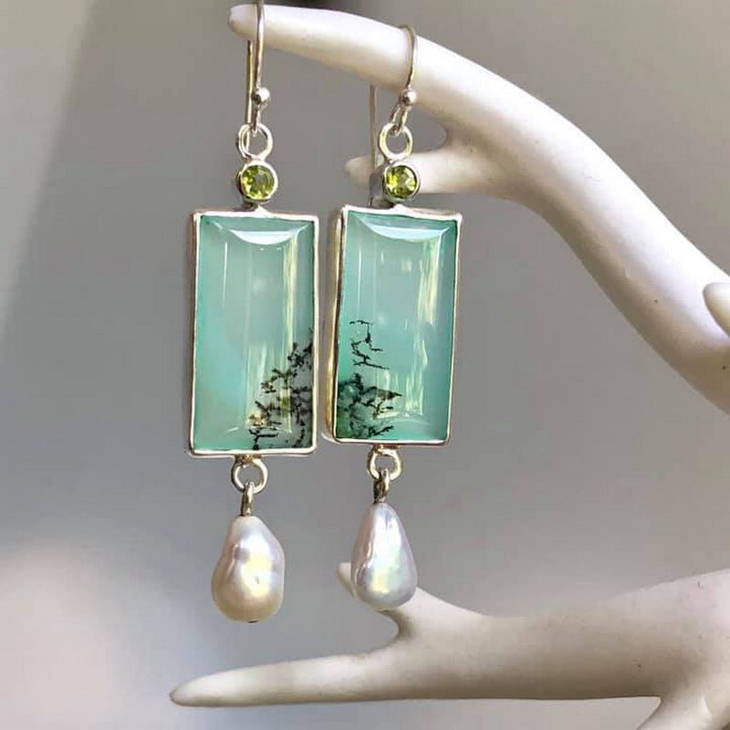 Discover the Heritage Turquoise Moonstone Geometric Drop Earrings, showcasing stunning hues of turquoise and moonstone in a captivating geometric design. Measuring between 4.0cm and 5.9cm in length, these earrings add a unique touch to your ensemble. Pair them with a simple dress or a casual outfit to let these earrings shine.