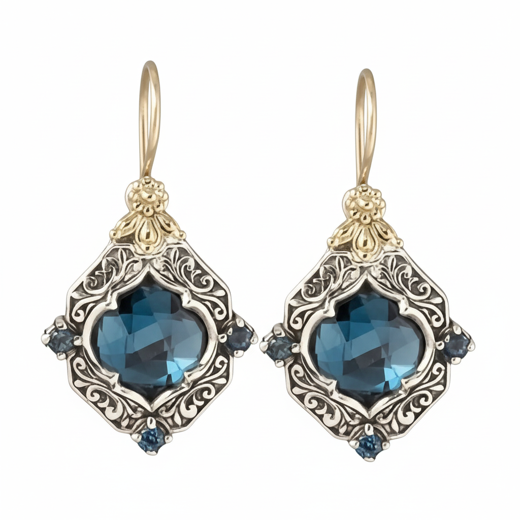 Classic elegance redefined with the Heirloom Sapphire Carved Earrings. These stunning earrings feature bold, intricate geometric elements and auspicious patterns, embodying a palace style. Perfect for pairing with a chic evening outfit or adding a touch of sophistication to your everyday look.